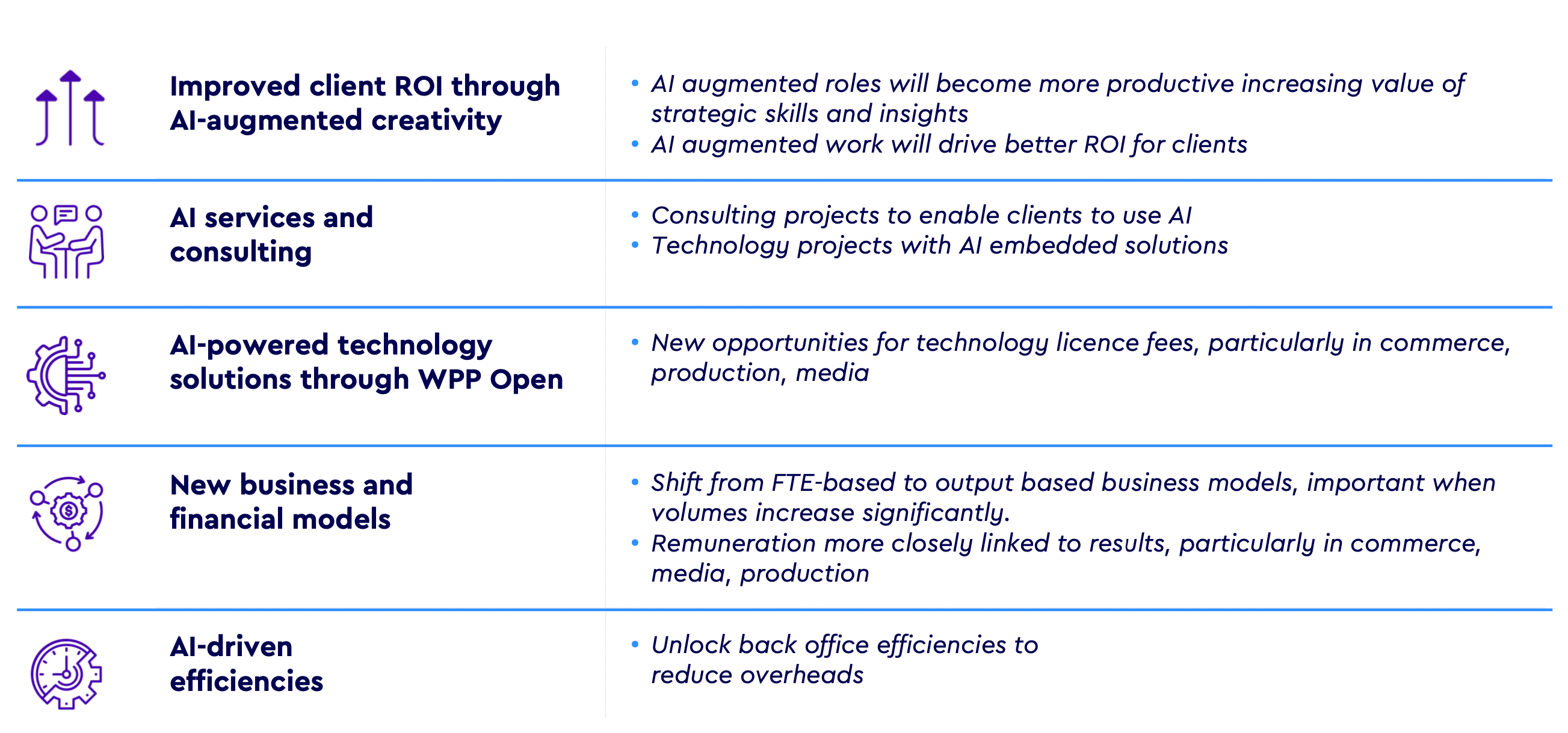 Indeed WPP is doubling-down on creativity while simultaneously building its technologies - the two are fully intended to work synergistically. By combing creativity with AI, WPP believe they will be able to produce higher volumes of work, with higher effectiveness and at lower cost. Using the technologies, creatives can iterate faster, prototype ideas and get to production faster and cheaper.