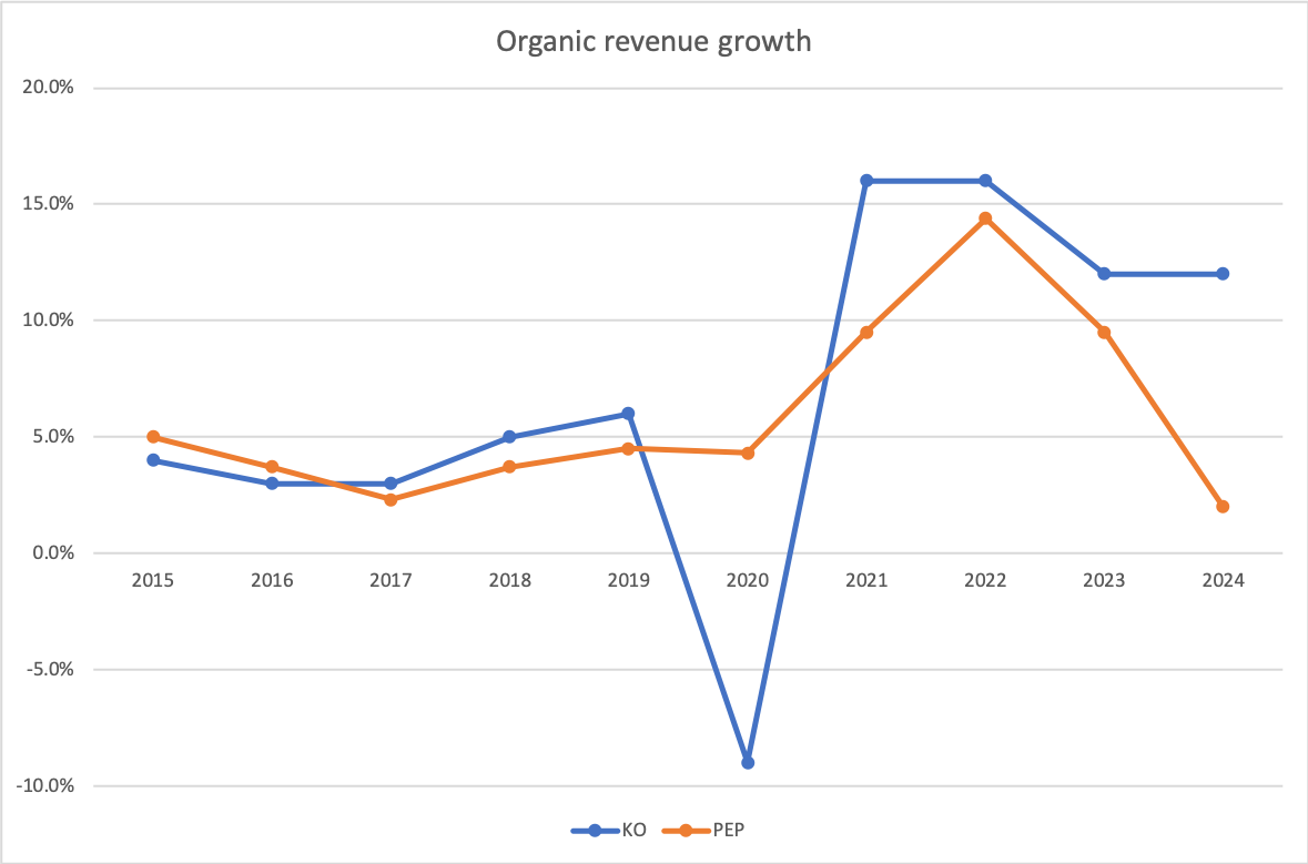 KO and Pepsi used to grow at similar rates, then we had the disruption from the pandemic and spillover into inflation. But in the last several years, KO has really entered its stride, while peers struggle to get the balance between price/mix and volumes right. Pepsi is not alone here. So what has gone so right at KO? If you listen to KO’s management, they very consistently talk about their global marketing transformation that began in late 2021 as one of the central drivers of their recent success.