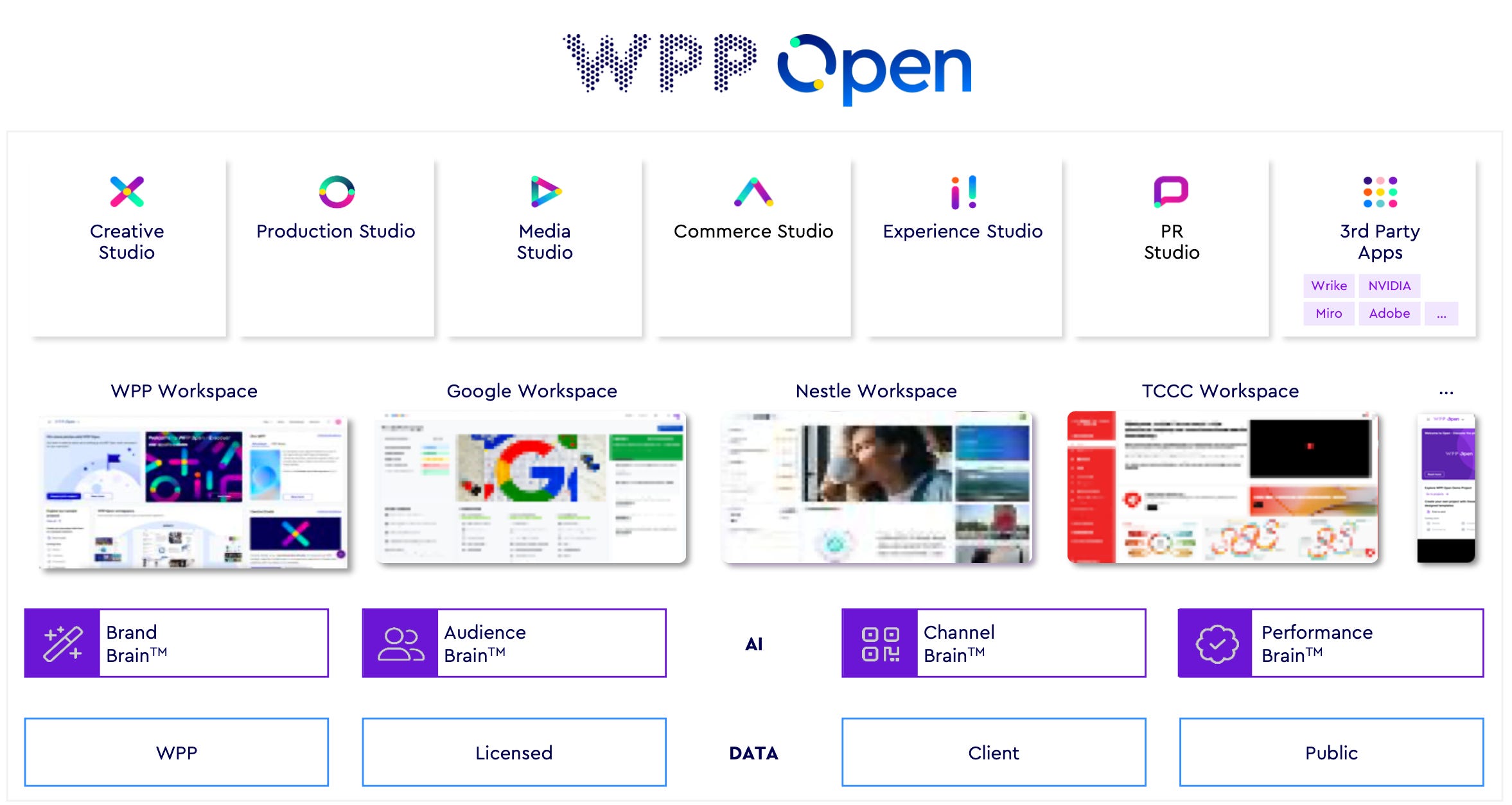 From what I understand, Open runs on Google Cloud. Third-party apps are embedded into Open too, via APIs. AI functionality is central to the entire proposition - whether it’s through natural language queries, content generation, optimisation algorithms as well as WPP’s proprietary ‘Brains’ (see later). WPP has 3,500 people working on Open’s development and has invested hundreds of millions so far. We discussed earlier a key part of Mark Read’s strategy has been breaking down silos and reintegrating the business - per CTO Stephan Pretorius: