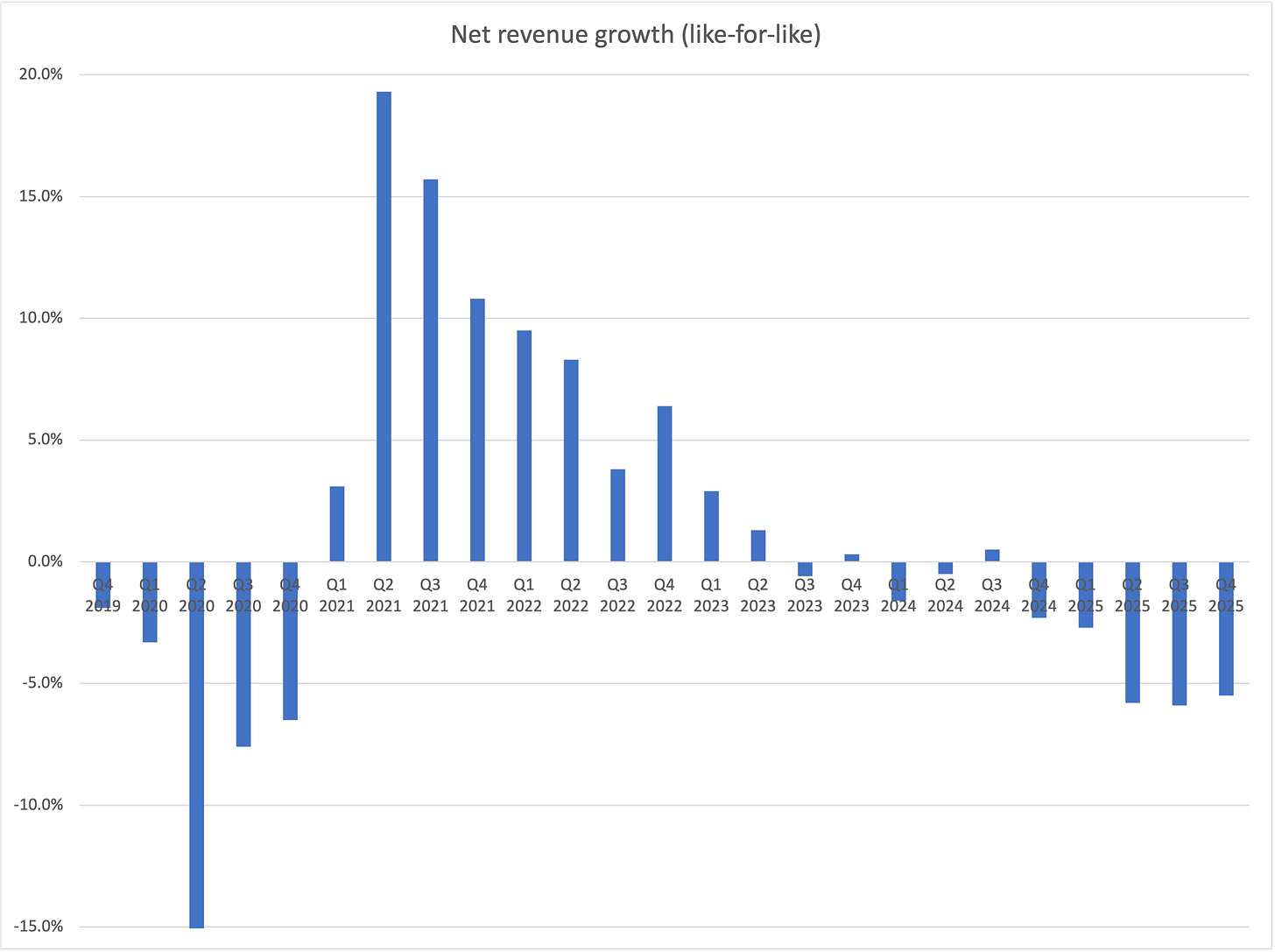 2026 is shaping up to be another rough year but, let’s face it, the bar is low at this stage. In order to work out reasonably well from here I think WPP merely needs to persuade investors of its right to exist. If they can continue to win client pitches and simply stop shrinking, I think that should be sufficient - and it could be on the cards for the second half of 2026. Quarterly comps get much easier in the second half of 2026, especially in the context of Q4 2025 which was the strongest billings quarter since 2020.