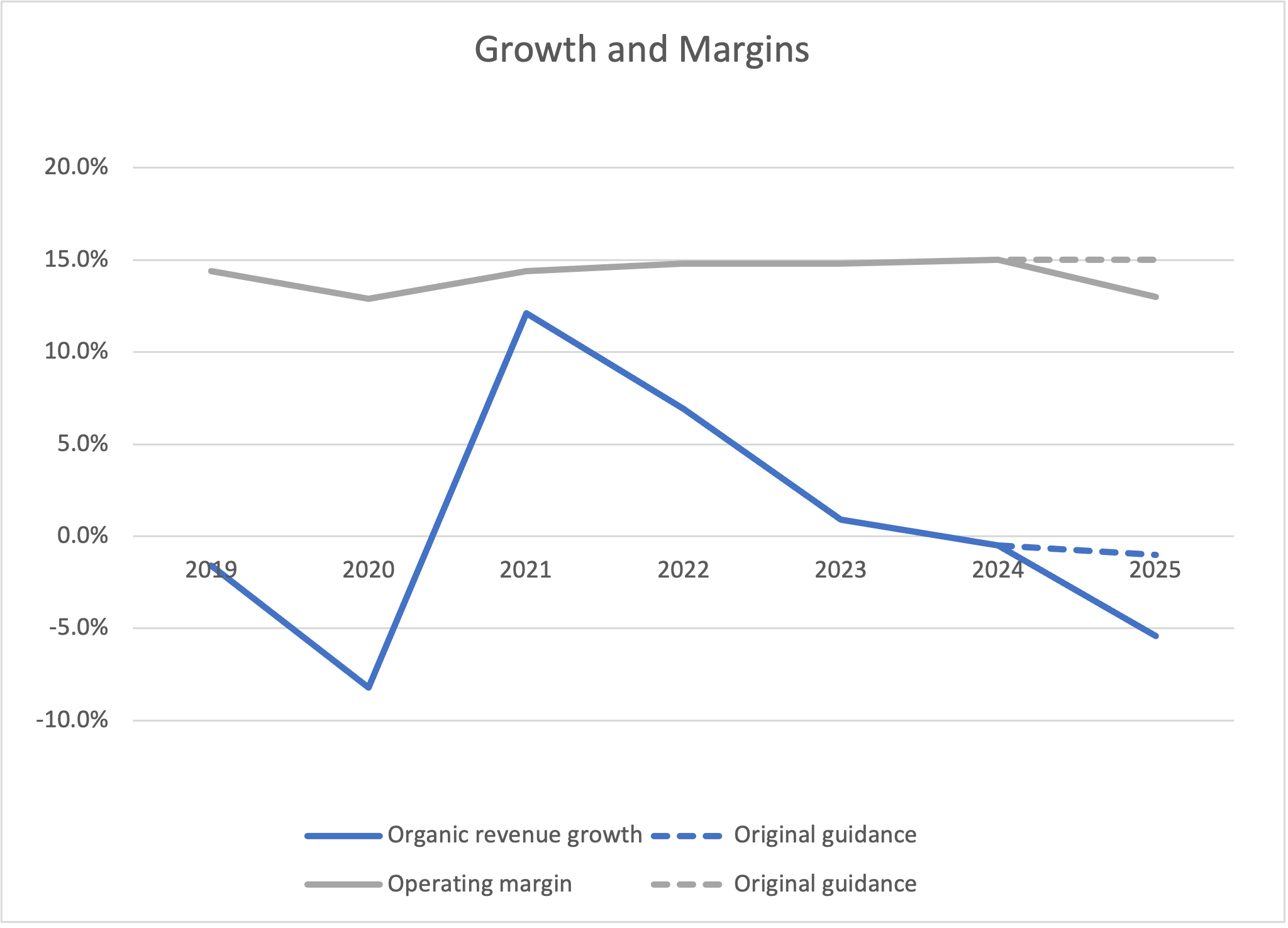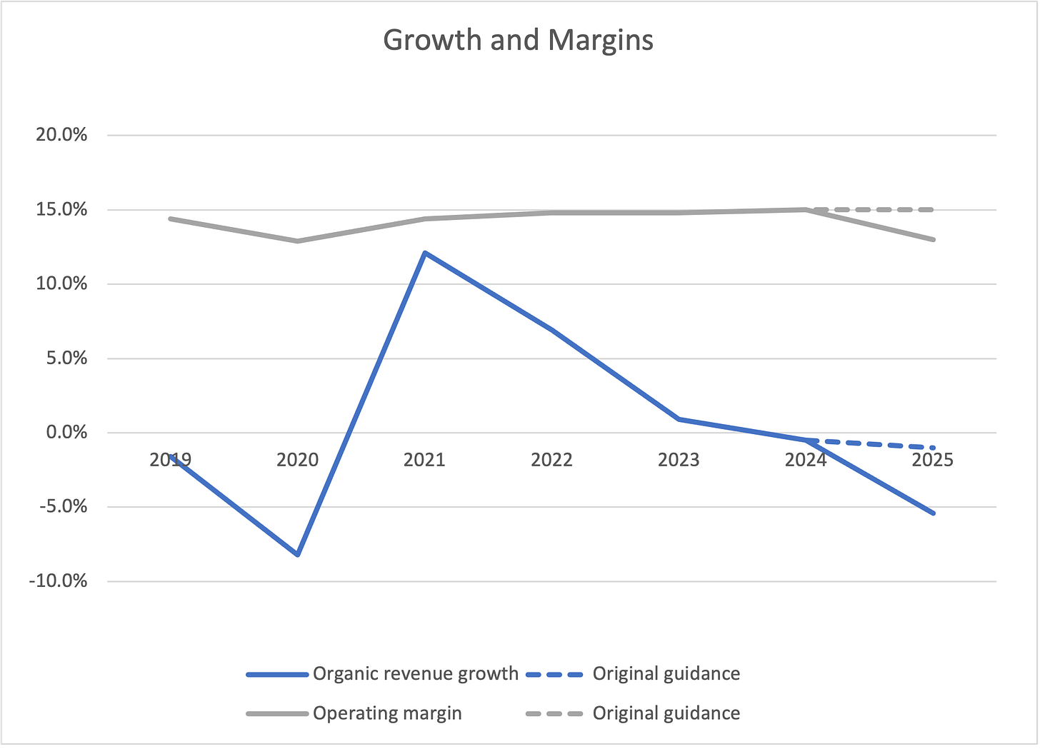 2025 was supposed to be a transition year - roughly flat margins and growth while they made some additional technology investments and cycled some remaining client losses from the prior year. In the end growth was almost 450bps behind initial guidance, and operating margin 200bps behind (operating deleverage and 100bps in severance costs):