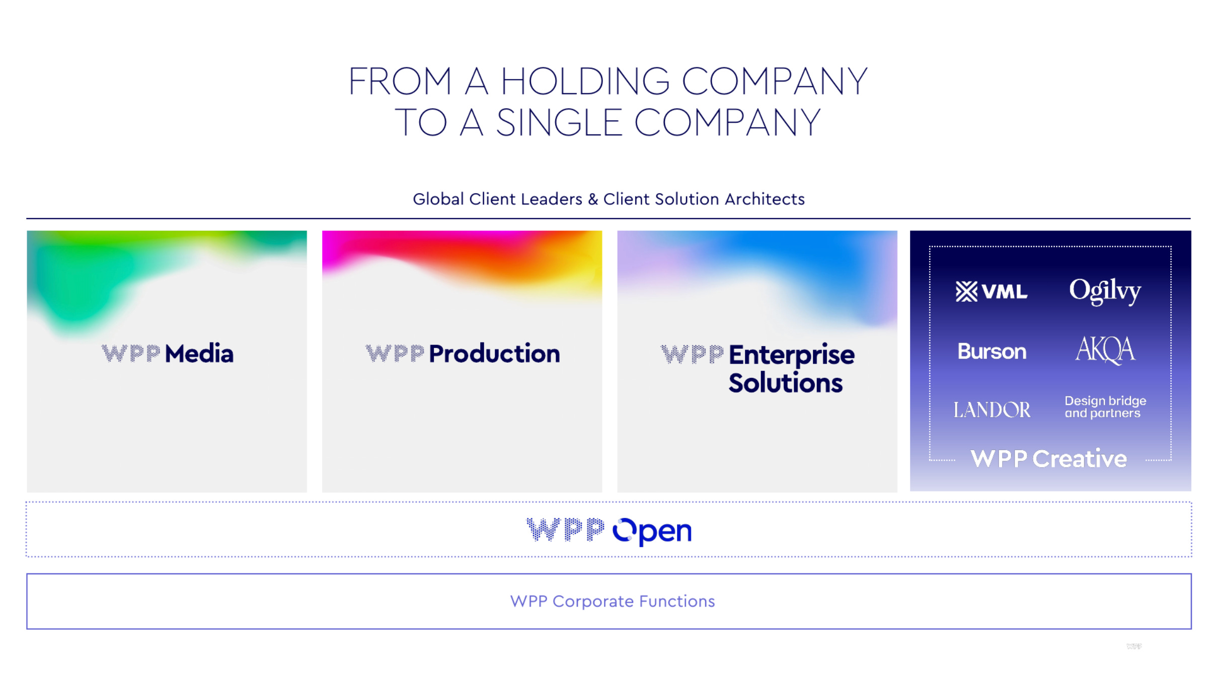 To build on our current momentum and make it sustainable, we need to radically simplify our organization really to unlock true client centricity. So to do that, WPP will no longer be a holding company. We will no longer be a shopping basket full of stand-alone businesses, hundreds of stand-alone businesses.